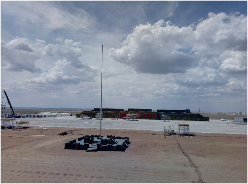 在閱兵區(qū)域現(xiàn)場(chǎng)嚴(yán)格把關(guān),做好現(xiàn)場(chǎng)巡檢,做到第一時(shí)間發(fā)現(xiàn)問題、第一時(shí)間解決問題;公司技術(shù)保障團(tuán)隊(duì)還根據(jù)當(dāng)?shù)貧夂蚝偷刭|(zhì)特點(diǎn),對(duì)施工方案中的詳細(xì)技術(shù)參數(shù)進(jìn)行驗(yàn)算和溝通,為相關(guān)單位提供了高效的技術(shù)支持;同時(shí),我們結(jié)合“九三大閱兵”的經(jīng)驗(yàn),并針對(duì)草原地區(qū)多風(fēng)、多雷暴的特點(diǎn)認(rèn)真審核了各種相應(yīng)安全和應(yīng)急預(yù)案。