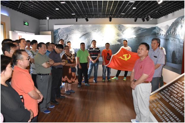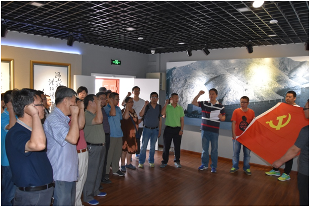 在黨旗和在長(zhǎng)城為背景的展墻下,由黨委委員劉永忠?guī)ьI(lǐng)黨員重溫入黨誓詞。大家高舉握緊拳頭的右手,宣讀了遵守黨的章程,履行黨員義務(wù),執(zhí)行黨的決定,嚴(yán)守黨的紀(jì)律,堅(jiān)守誓言。