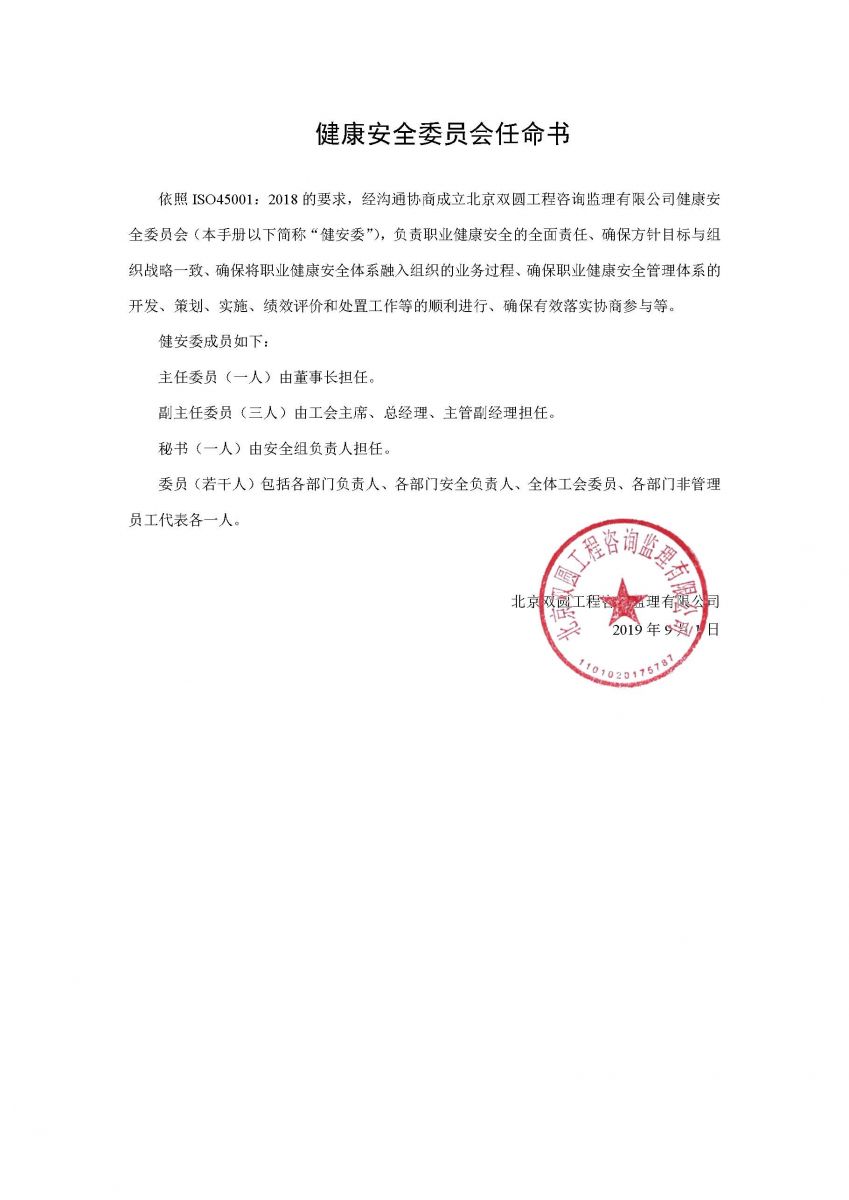 健康安全委員會任命書