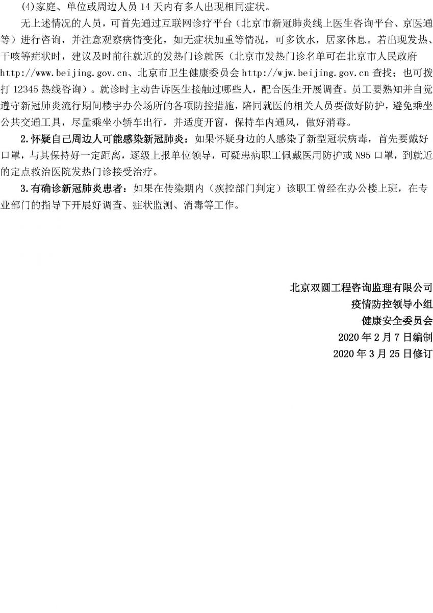 北京雙圓工程咨詢監(jiān)理有限公司疫情防控工作方案(20200325修訂)