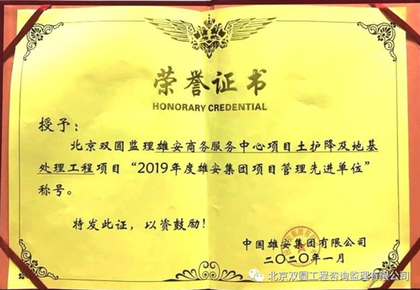 2019年度雄安集團項目管理先進單位