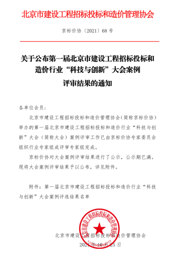 在第一屆北京市建設(shè)工程招標(biāo)投標(biāo)和造價行業(yè)“科技與創(chuàng)新”大會案例評審活動中,北京雙圓工程咨詢監(jiān)理有限公司申報的《依實例圖發(fā)展探索造價咨詢的BIM技術(shù)應(yīng)用》案例,榮獲三等獎。(具體情況詳見附件二)