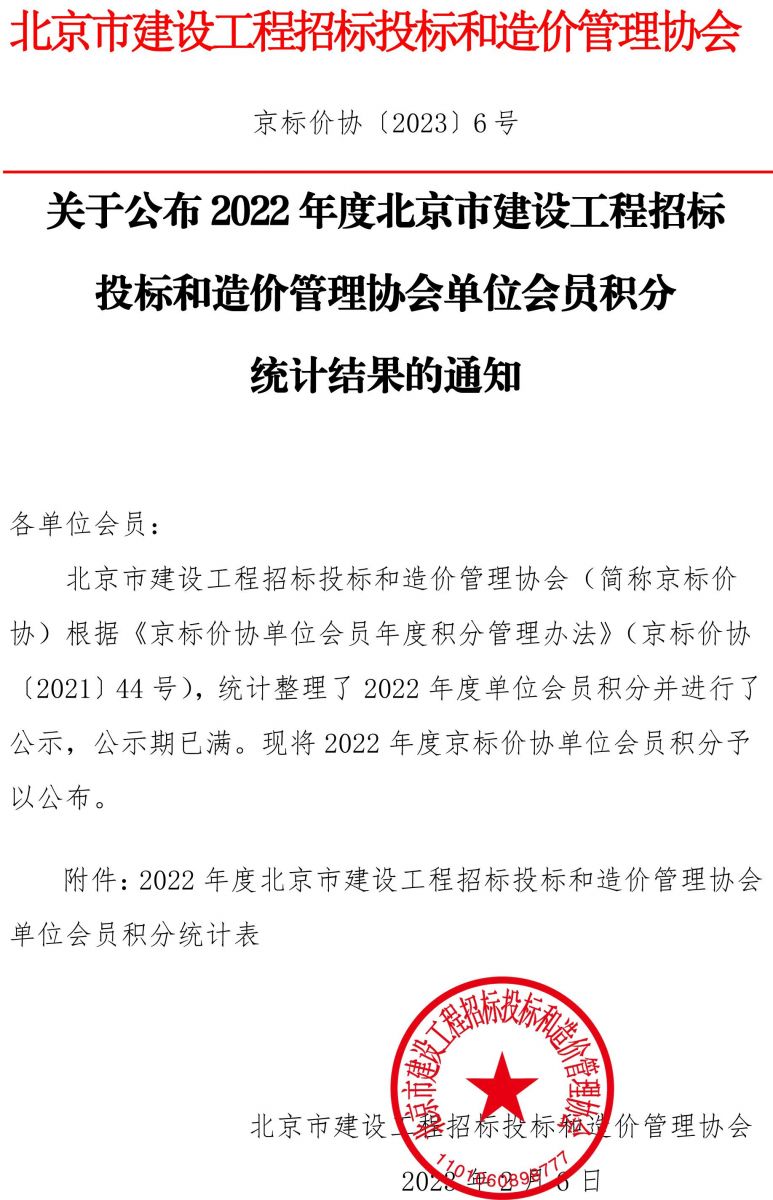 北京雙圓工程咨詢監(jiān)理有限公司連續(xù)三年闖進(jìn)“京標(biāo)價(jià)協(xié)”年度會(huì)員積分前20名,今年在全市613家會(huì)員單位排名中,會(huì)員積分名列第11名。(具體情況詳見附件二)