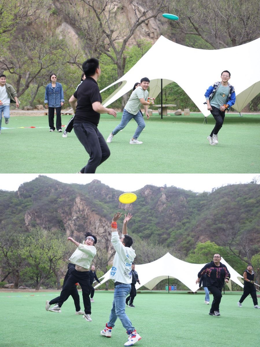 下午,一番休整后,開始了高強度的拓展活動——真人吃雞和飛盤競賽。兩項活動分組同時進行。
